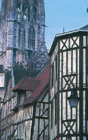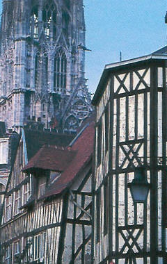 Contrast Rouen's gothic cathedral Notre Dame with its famous namesake in